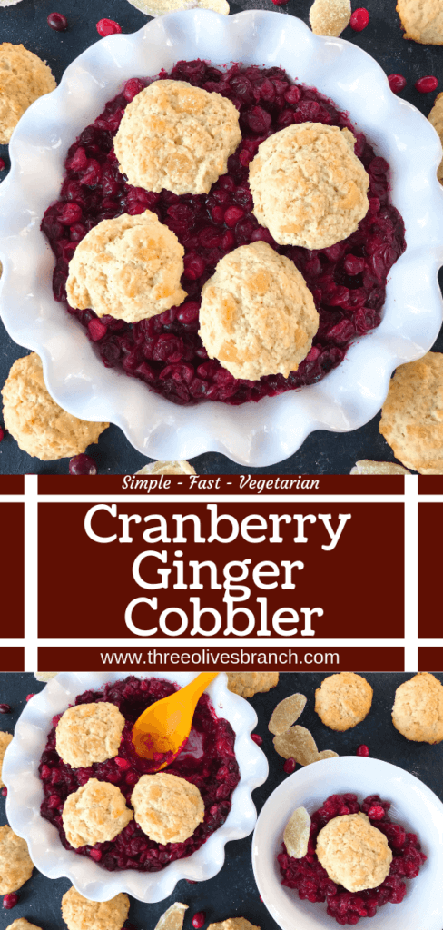 This Holiday Cranberry Ginger Cobbler is a sweet and tangy dessert recipe perfect for Christmas, Thanksgiving, and the holidays!